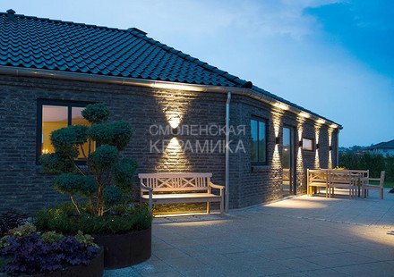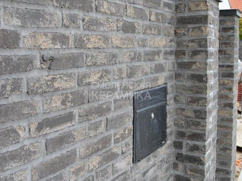 Полнотелый кирпич ручной формовки RT 515 Blaugedampft Rokoko Handform ziegel из серии RUSTICA производится на заводе RANDERS TEGL в Дании форматом и размером - ECO-DNF 228X50X54 мм, имеет модный серо-черный цвет с переливом в желтый и выраженными неровностями, характерными для состаренного кирпича. Применяется при возведении фасадов зданий, заборов, а так же в оформлении печей, каминов. Формат с приставкой ECO - является экономичным, это тонкий кирпич, т.е. половинчатый или распиленный на две части.