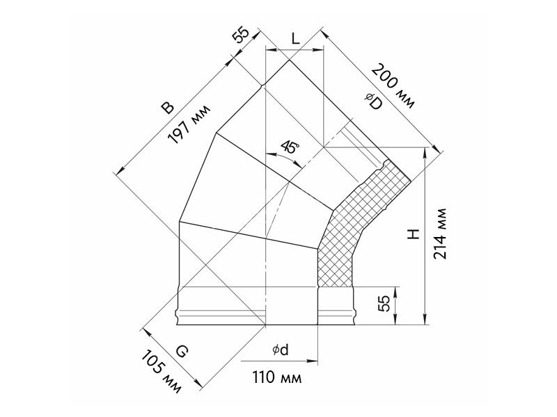 Утепленный элемент предназначен для отвода дымовых газов на неотапливаемых прямолинейных участках дымохода. Важно! За счет раструбов полезная длина элемента на 60 мм меньше, чем номинальная. Внутренний контур изготовлен из нержавеющей стали AISI430 толщиной 0,5 мм. Теплоизоляция - из базальтовой ваты, это позволяет свести к минимуму образование конденсата и будет способствовать быстрому прогреву дымоходного канала и выходу системы в рабочий режим. Холодная формовка раструбного соединения с идеальной геометрией и газоплотностью. Лазерная сварка встык обеспечивает тонкий и прочный шов, увеличивая в разы срок эксплуатации. Рабочая температура до 450°С.