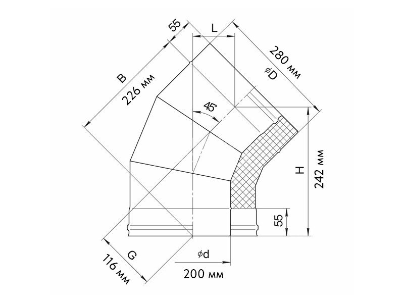 Утепленный элемент предназначен для отвода дымовых газов на неотапливаемых прямолинейных участках дымохода. Важно! За счет раструбов полезная длина элемента на 60 мм меньше, чем номинальная. Внутренний контур изготовлен из нержавеющей стали AISI430 толщиной 0,5 мм. Теплоизоляция - из базальтовой ваты, это позволяет свести к минимуму образование конденсата и будет способствовать быстрому прогреву дымоходного канала и выходу системы в рабочий режим. Холодная формовка раструбного соединения с идеальной геометрией и газоплотностью. Лазерная сварка встык обеспечивает тонкий и прочный шов, увеличивая в разы срок эксплуатации. Рабочая температура до 450°С.