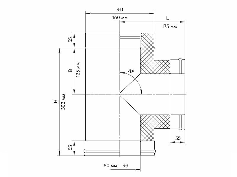 Сэндвич-тройник 90° (430/0,5мм + нерж.) Ф80х160