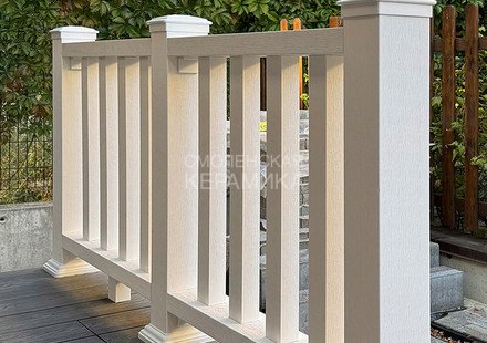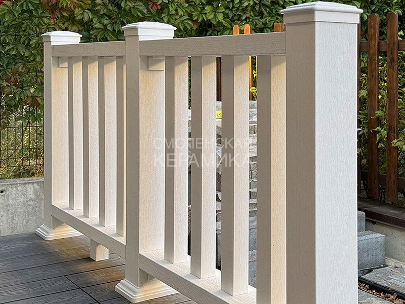 Поверхность: рельефная фактура «под брашировку». Способ монтажа: на саморезы к столбам при помощи крепления для перил. Упакованы по четыре штуки в термоусадочную плёнку.