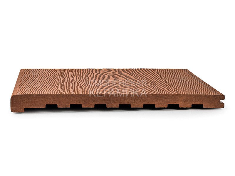 Поверхность: рельефная фактура «под дерево», шлифованный капинос. Способ монтажа: металлическим уголком и кляммером к лагам каркаса из алюминия, ДПК, металла. Упаковка по две штуки в термоусадочную плёнку поможет избежать царапин и потёртостей при поштучной перевозке.