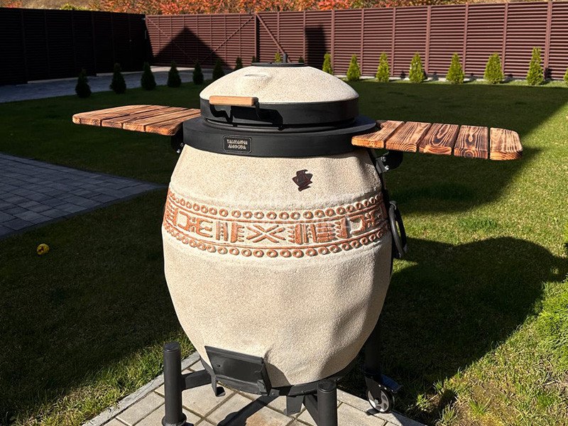 - Корпус выполнен из высокопрочного бетона, устойчивого к резким изменениям температуры и механическим повреждениям. Теплоизоляция дополнительно повышает устойчивость тандыра к износу, продлевая срок службы. Модель оснащена качественной теплоизоляцией, позволяющей поддерживать стабильно высокие температуры на протяжении длительного периода времени (от 6-8 часов). Такой подход помогает значительно сократить расходы на топливо и облегчает процесс приготовлени