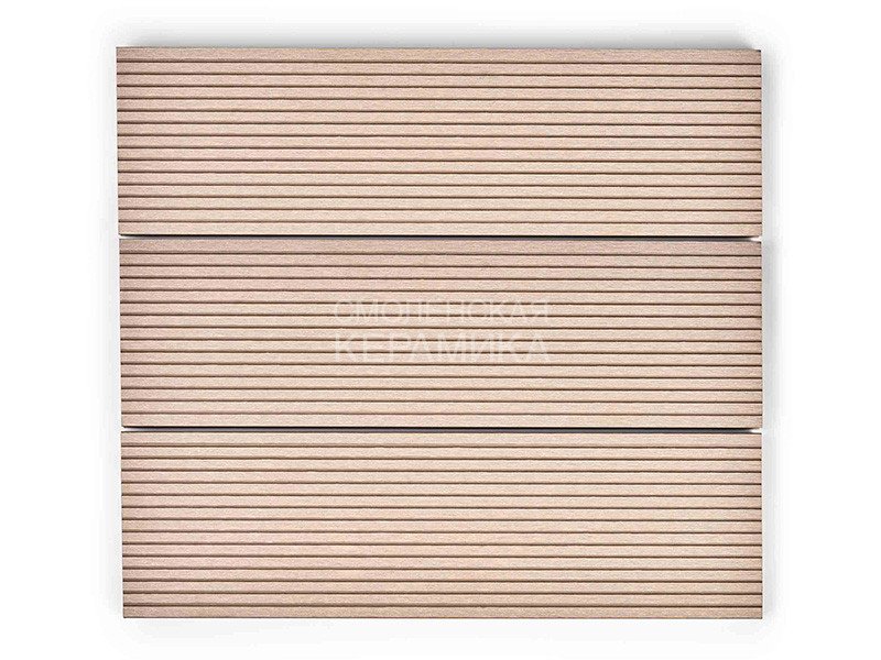 Поверхности: рельефная 3D-фактура «под дерево» и «вельвет». Способ монтажа: кляммером (клипсой) к лаге каркаса из ДПК, алюминия или металла — скрытый крепёж. Надёжная упаковка по две штуки в термоусадочную плёнку поможет избежать царапин и потёртостей при поштучной перевозке.