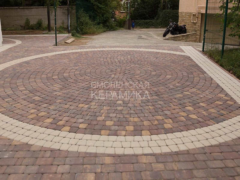 Тротуарная плитка коллекции "Классико круговая" благодаря своей форме позволяет укладывать плитку как в прямом направлении, так и в круговом, что может подчеркнуть на вашем участке различные виды объектов, будь это бассейн, скульптура, садовые фигурки и так далее. Сочетая различные цвета и коллекции можно создавать на участке индивидуальный дизайн мощения.