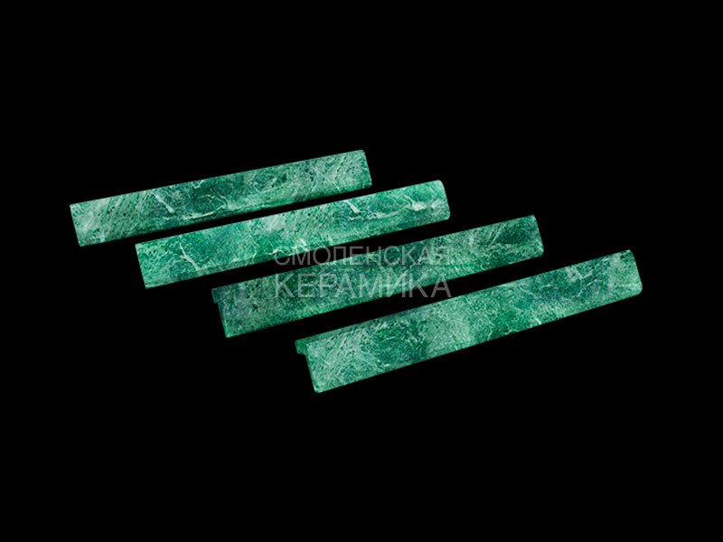 Уголок из натурального змеевика размерами 300х40х40мм и толщиной камня 10мм. Предназначен для использования при декоративной отделке парных совместно с плиткой из змеевика. Уголком закрываются внешние углы подиума, дымохода а так же стыки плит под углом 90 градусов. Внешние стороны полированы для проявления яркого природного рисунка.