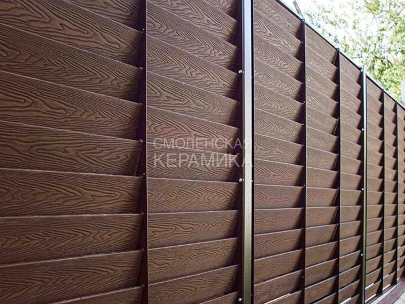 Поверхность: рельефная фактура «под дерево» с двух сторон. Способ монтажа: вытяжными заклепками или саморезами к каркасу из алюминия, ДПК, металла. Упаковка по шесть штук в термоусадочную плёнку поможет избежать царапин и потёртостей при поштучной перевозке.